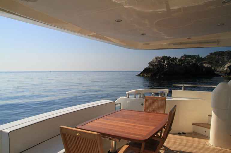 Aicon 64' crewed charter in Sicily: fast, sleek and holding a unique position in the Aicon fleet, this impressive luxury motor yacht is powered by high performance inboard diesel engines for high efficiency. Her accommodation, incorporating two double cabins, and two twin bedded guest cabin, ensures that her guests will enjoy a luxurious and spacious holiday. Professional crew (separate crew quarters) will prepare you delicious Italian meals and guide you to the most exclusive destinations. Spacious sunbathing area, vast selection of watertoys. Choose the dates and we will take care of all the rest!
