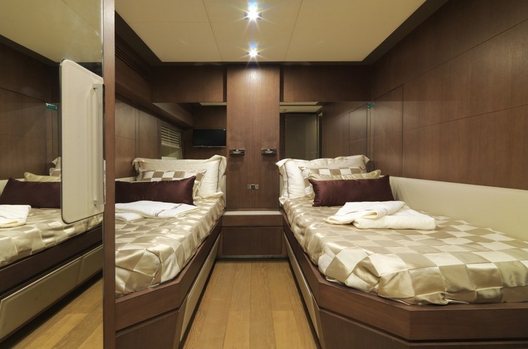 Notes: separate crew area, A/C, TV with 40" LCD screen in the master cabin, TV with 30" LCD screen in the VIP and in the Double cabins