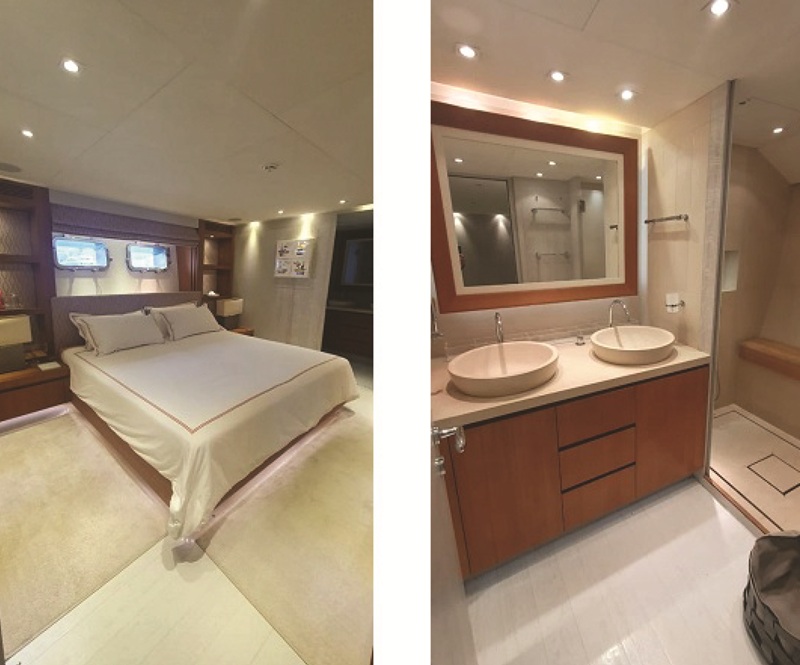 Master Cabin: Full Beam with balconies on the main deck & En-suite facilities