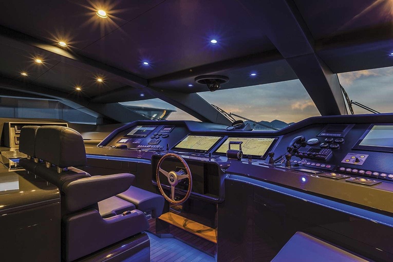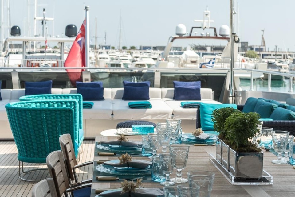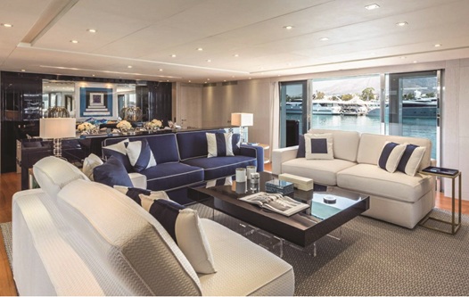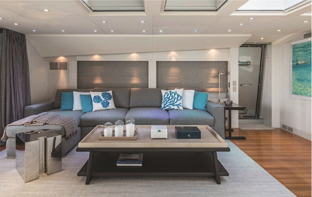 Yacht reflects a contemporary style, elegant yet modern. Teak and white-painted oak are the predominant woods for the walls.