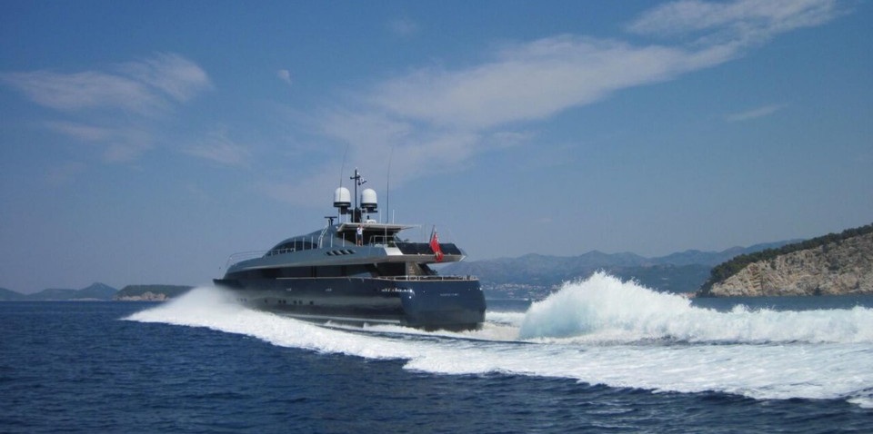 This 42m all aluminum motor yacht, reaches a maximum speed of 27 kn, while she can cruise at 20 kn and is projected to give a range of 800 miles. She is powered by twin MTU 16V 4000 M90 engines.