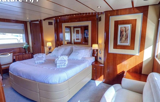 Her interior layout accommodates up to 10 guests in 5 well-appointed staterooms, including a full-beam master suite, two double staterooms, and two twin staterooms. She also carries up to 6 crew, ensuring a seamless and luxurious onboard experience.