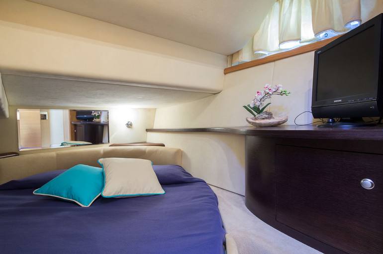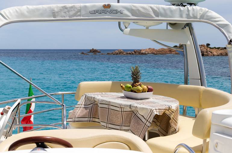 charter-cranchi5001This Cranchi 50' in Sardinia is a 50 feet flybridge of the last Cranchi generation, elegant and modern, which offers wide spaces for beautiful cruises for 4 to max 6 guest in two doubles and 1 twin cabin or for 10 people as a "day cruiser". Explore beautiful Sardinia on our Cranchi 50' - Costa Smeralda, La Maddalena, but also Corsica island (for weekly charters). The deck offers a wide astern cockpit with circular sofa and a comfortable dinner table. Forward sun deck with comfortable mattresses. The upper deck “fly” features a second dining table with sofa. Practical aft platform for an easy access to the sea. The yacht is equipped to give comfort to the guests on board: complete navigation instruments, air conditioning, TV Lcd in salon and in all cabin, Dvd and stereo system. Elegant and modern style furnishing, wide living area with dining table and sofa. Well equipped open space galley. The night area has a comfortable Master cabin ensuite, an ensuite guest's cabin with double bed and a twin cabin.