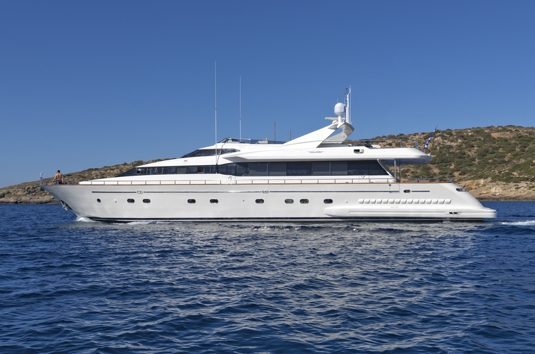 Falcon 100' charter, available in Greek islands from Athens. A stunning yacht built by shipyard FALCON offers her guests a unique and comfortable cruising experience.