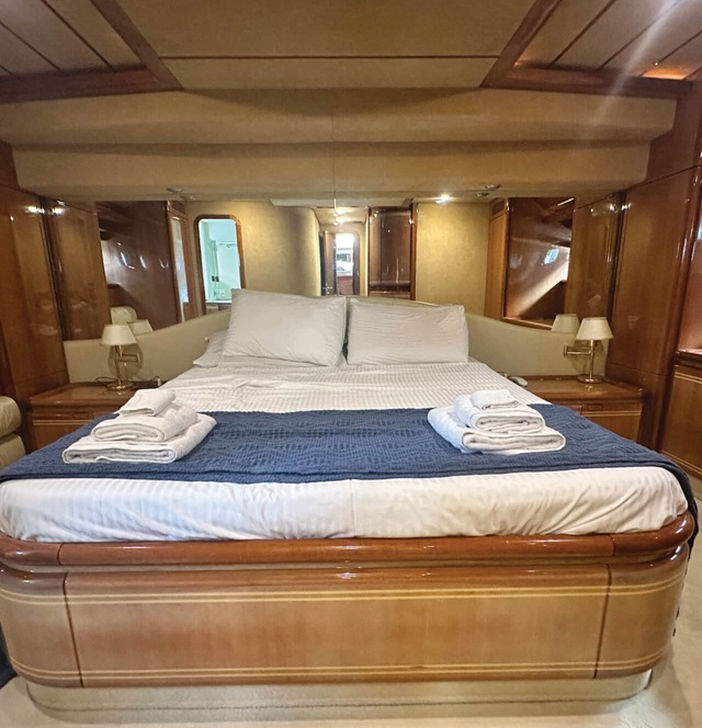 Spanning 23.98 meters, she comfortably accommodates up to 10 guests in 4 spacious en-suite cabins. Powered by twin CAT engines of 1,420 HP each, she delivers both performance and reliability.
