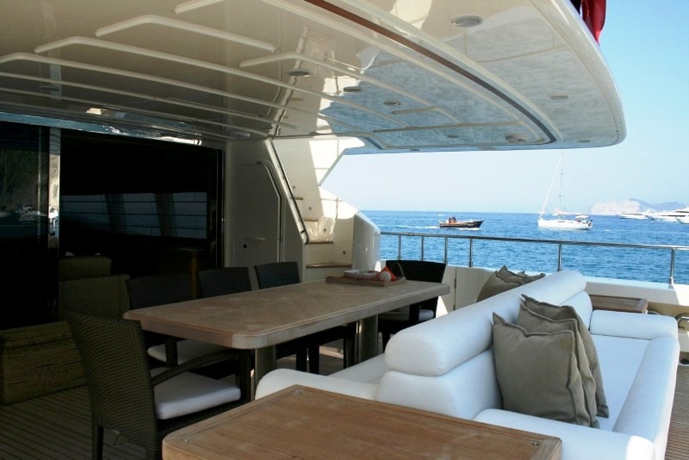 Teak cockpit, Teak sidedecks, Cockpit cushions, Cockpit table, Tender Zodiac YL 420 DL with outboard Yamaha engine 40hp