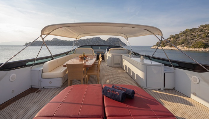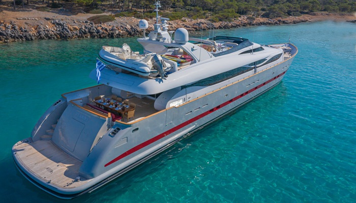 Length: LOA 39.65m Draft: 2.85m/9.5’ Year: 2004 Cruising speed: 24 Knots Maximum speed: 29 knots Vessel Location: Greece Number of cabins: 6 Number of berths: Guests:12 Hull Type: Fibreglass/GRP Mobile: 00 44(0)7885775317 E-mail Seller: Click here
