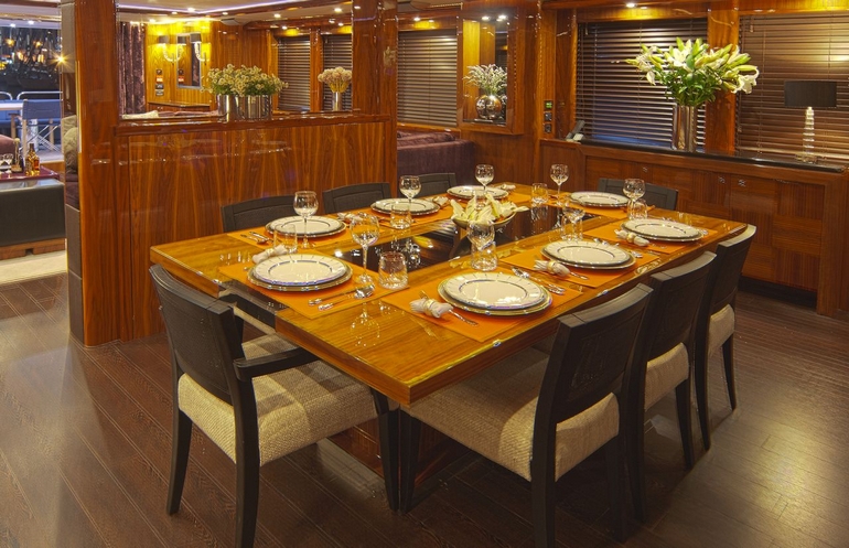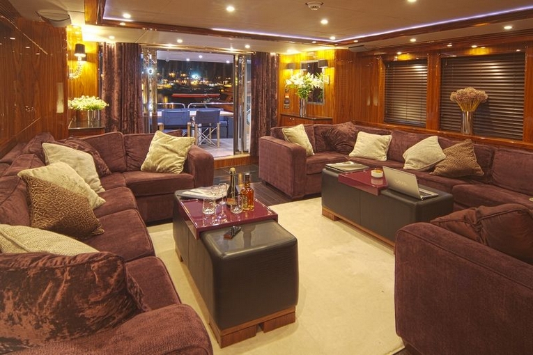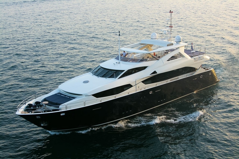 Charter-01Sunseeker 34M, breathtaking yacht, provides luxurious accommodation for up to 10 people plus crew (in separate quarters), the open plan living areas include a large saloon and dining area adjacent to a fully equipped galley and servery including crew mess which form a natural divide from the forward master stateroom, raised wheelhouse and crew quarters.