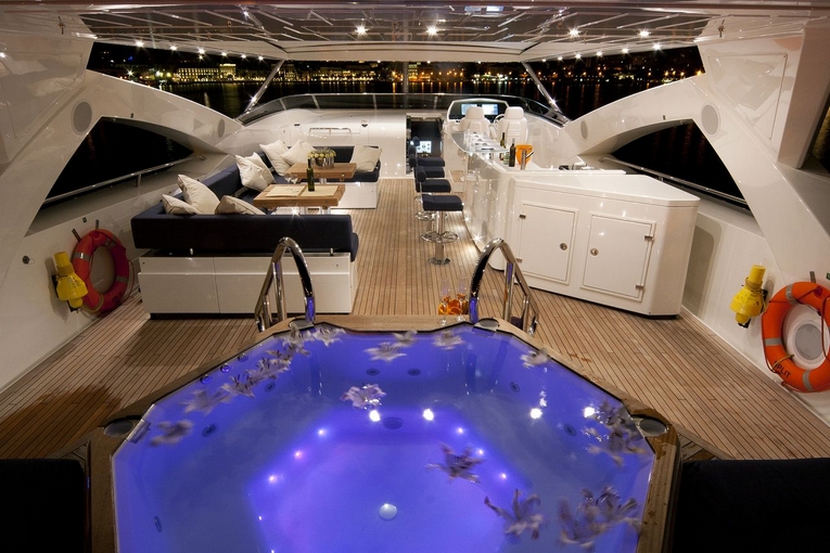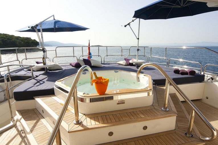 Vhf, Autopilot, Cushions, Eco, Air conditioning, Gps, Outboard, Hydraulic footbridge, Refrigerator, Deck jacuzzi