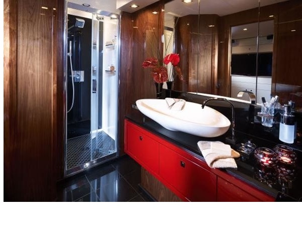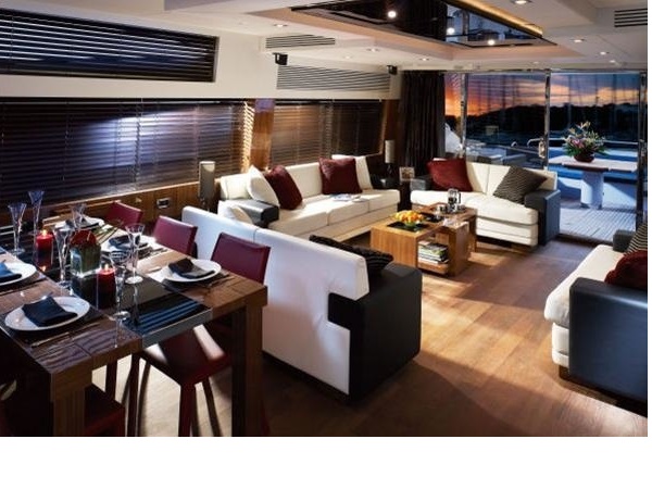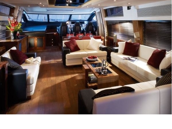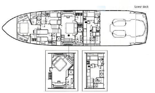 Layout/Interior: The accommodation follows the Predator norm with flow-through aft cockpit and main saloon, from which there are two stairways to the lower deck, one aft to crew and galley, another forward to the guest arrangements. With amidships full-beam master suite, two twin cabins and VIP suite toward the bow, all proving en-suite facilities. Crew accomodation consists of 2 berths, one single and one cabin with bunks. Interior is completed throughout with Black American Walnut - satin finish. Deck saloon flooring wide plank Amtico Wenge. Stair treads leading to galley/crew mess and lower lobby also in wide plank Amtico Wenge. ***Please note images used are of brochure shots at this time***
